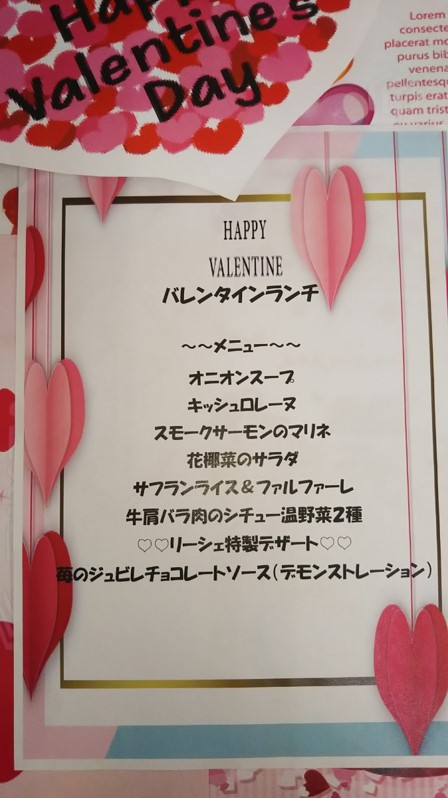 こんにちは。『リーシェガーデン和光/南館』では2月15日(月)のお昼にバレンタインのスペシャルランチを堪能しました。