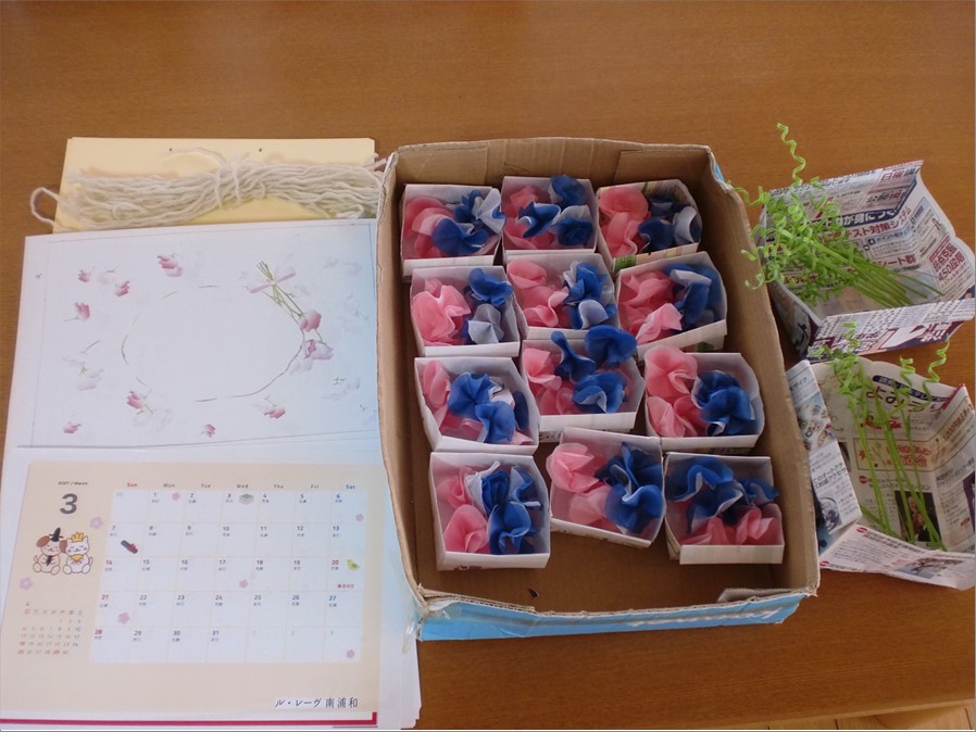 お花を合計8輪作成しなければいけなかったので、全員分でなんと320輪を作成しました!!(写真はほんの1部です)