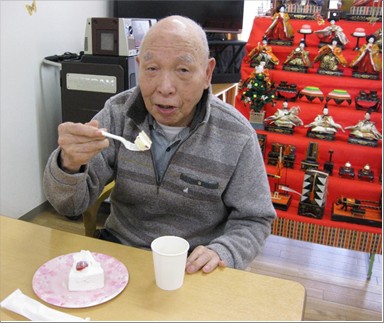 食べ終わると皆さんでBGMに合わせ「灯りをつけましょう ぼんぼりに~」とひな祭りの歌を合唱♪