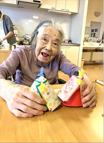 ということで、皆様の健康を願いながら折り紙を使ってひな人形づくりをしました。