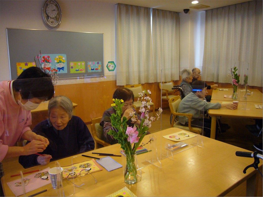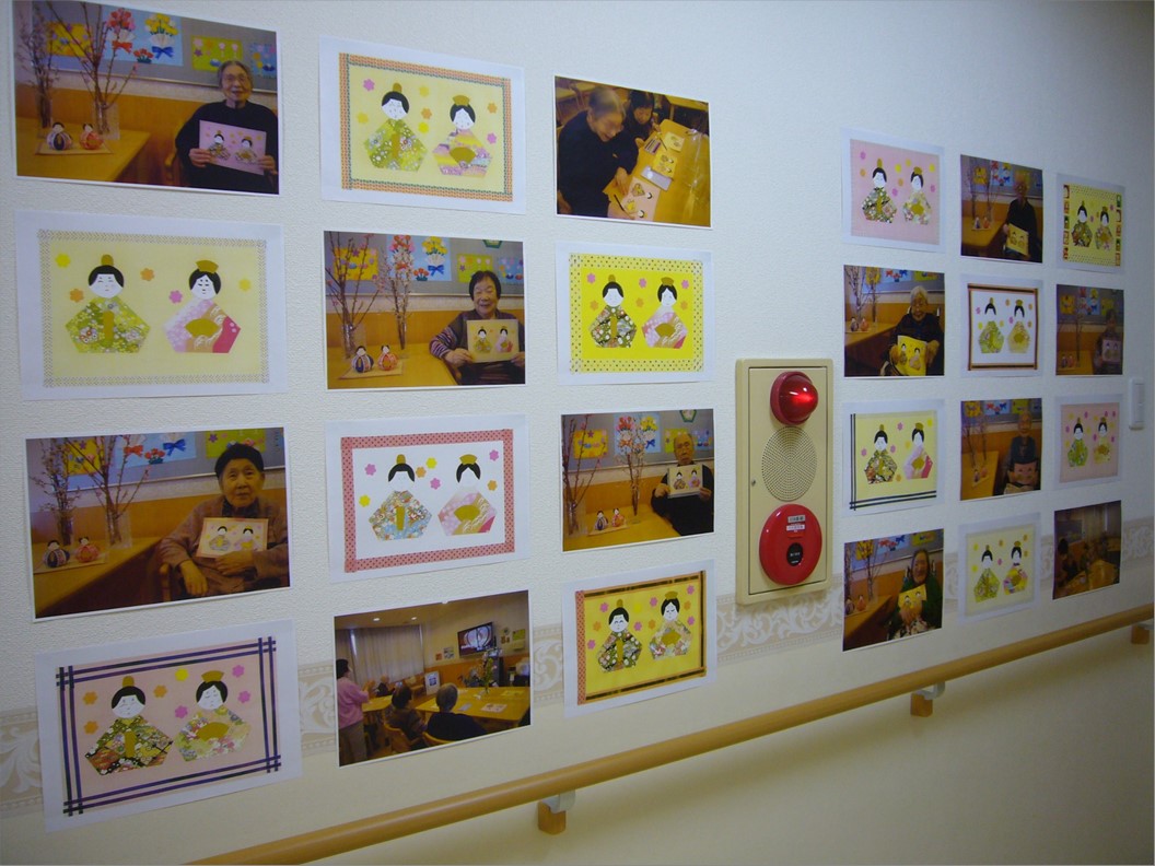 作品は居室と廊下に飾らせていただきました。館内がいっぺんに明るく華やかになりました。