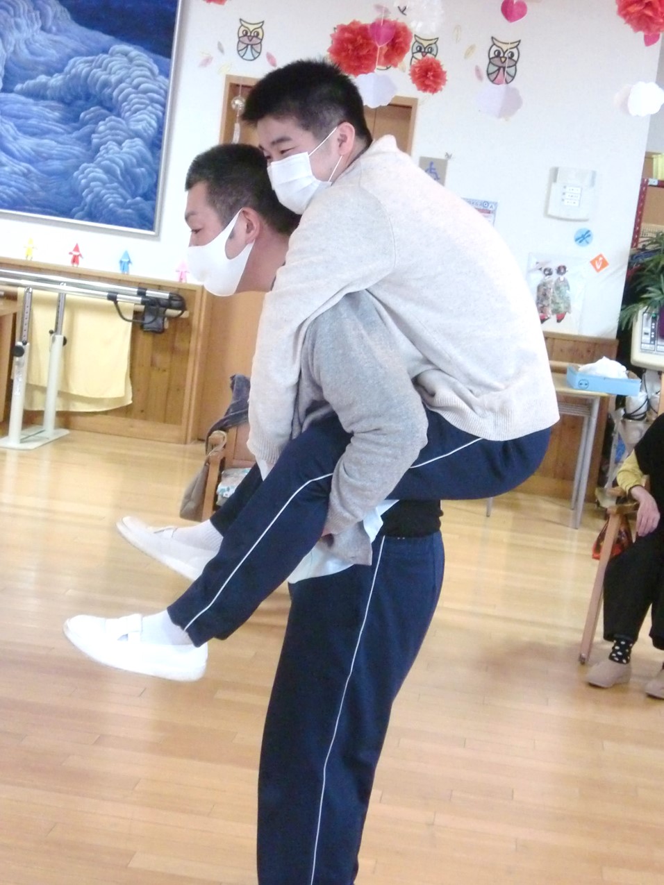 1.背負い搬送…傷病者を背負い、比較的長い距離を搬送するのに適した搬送法。