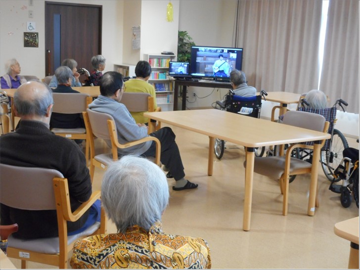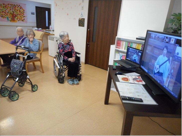 『ル・レーヴ狭山さくら館』のテレビにプロの三味線奏者・橋本大輝さん、民謡歌手の會澤あゆみさんが来て下さり、『ボランティアコンサート』を行って下さいました。