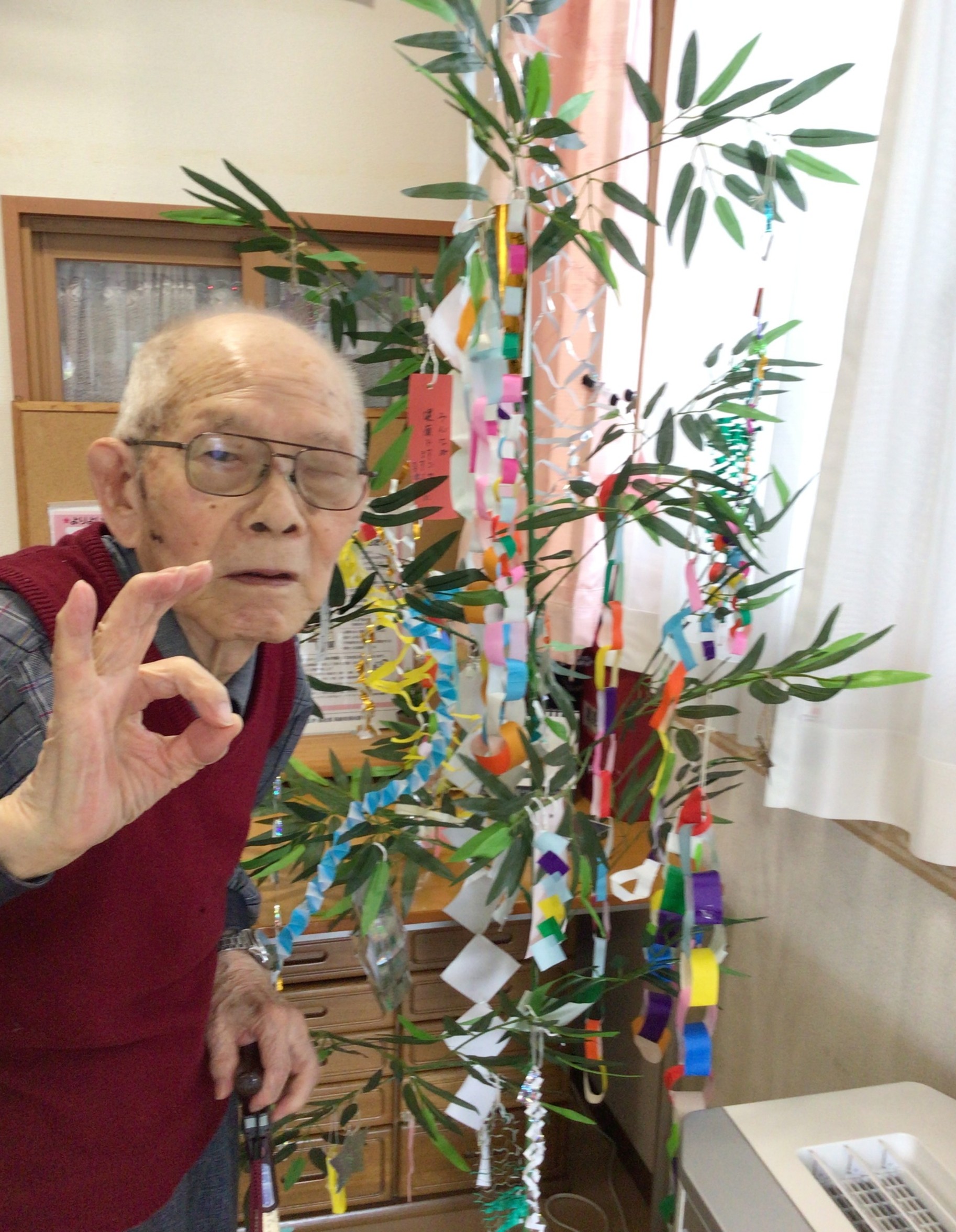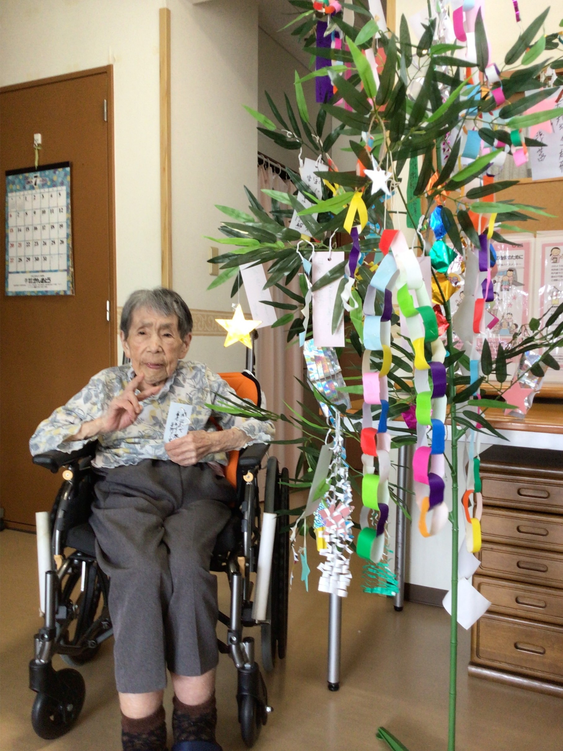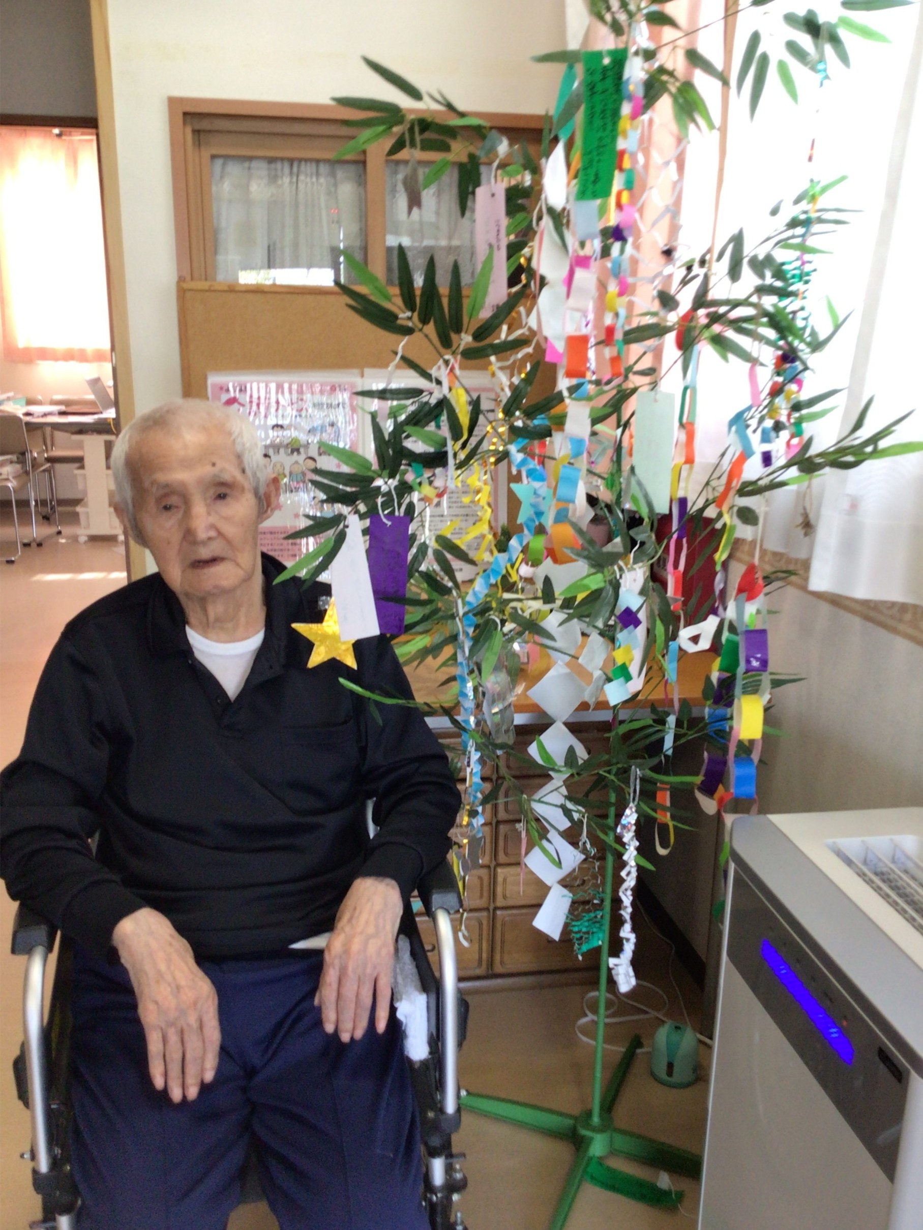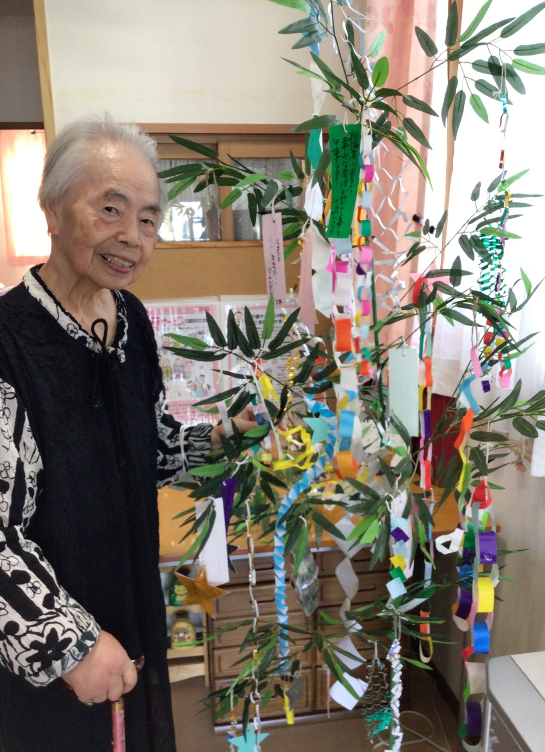 最初は、少し物足りないかな~と思いながら飾り付けをしていたのですが、入居者の皆さんに短冊を書いていただき、たくさんの想いがこめられた、とても素敵な笹になりました。