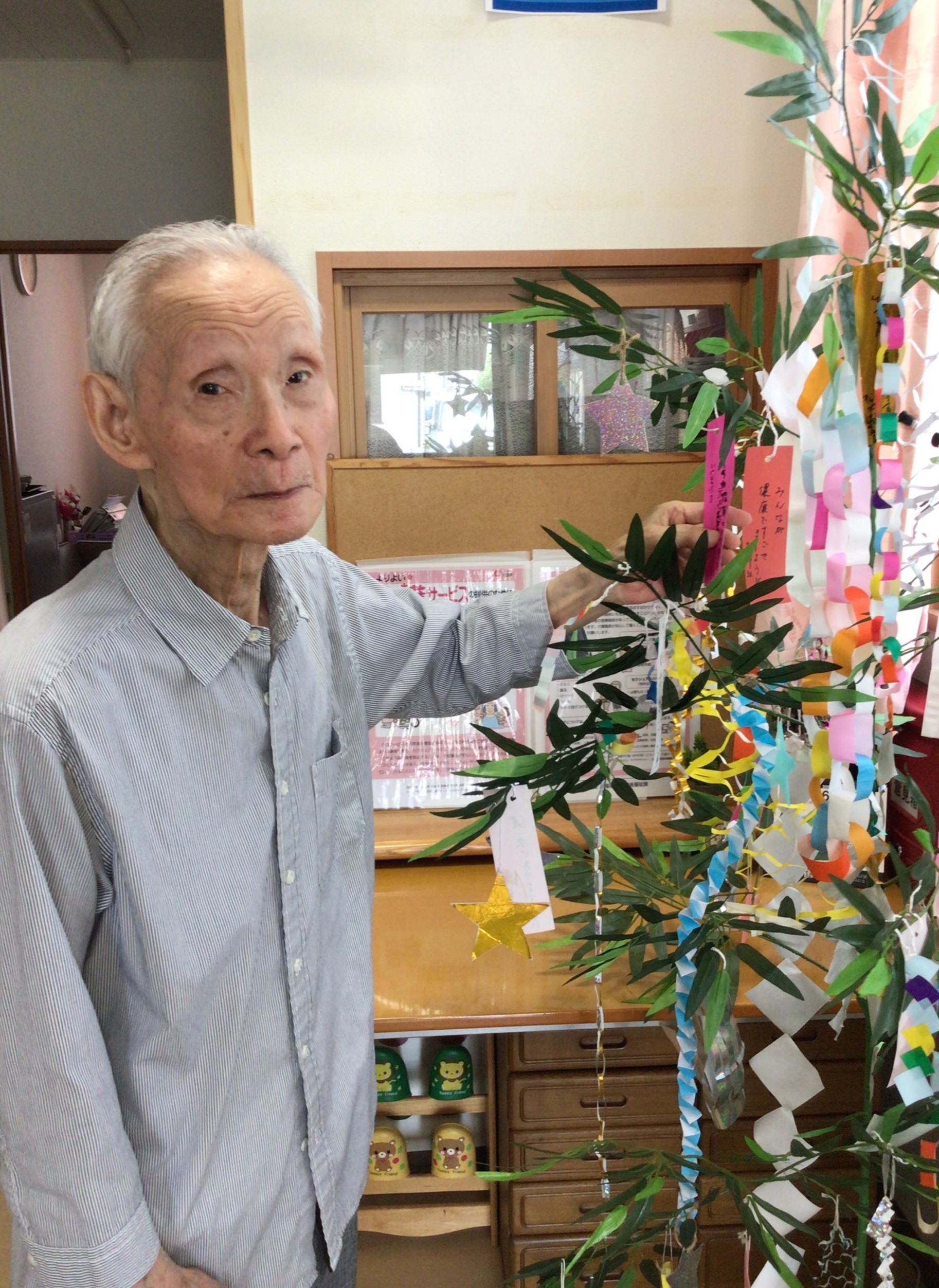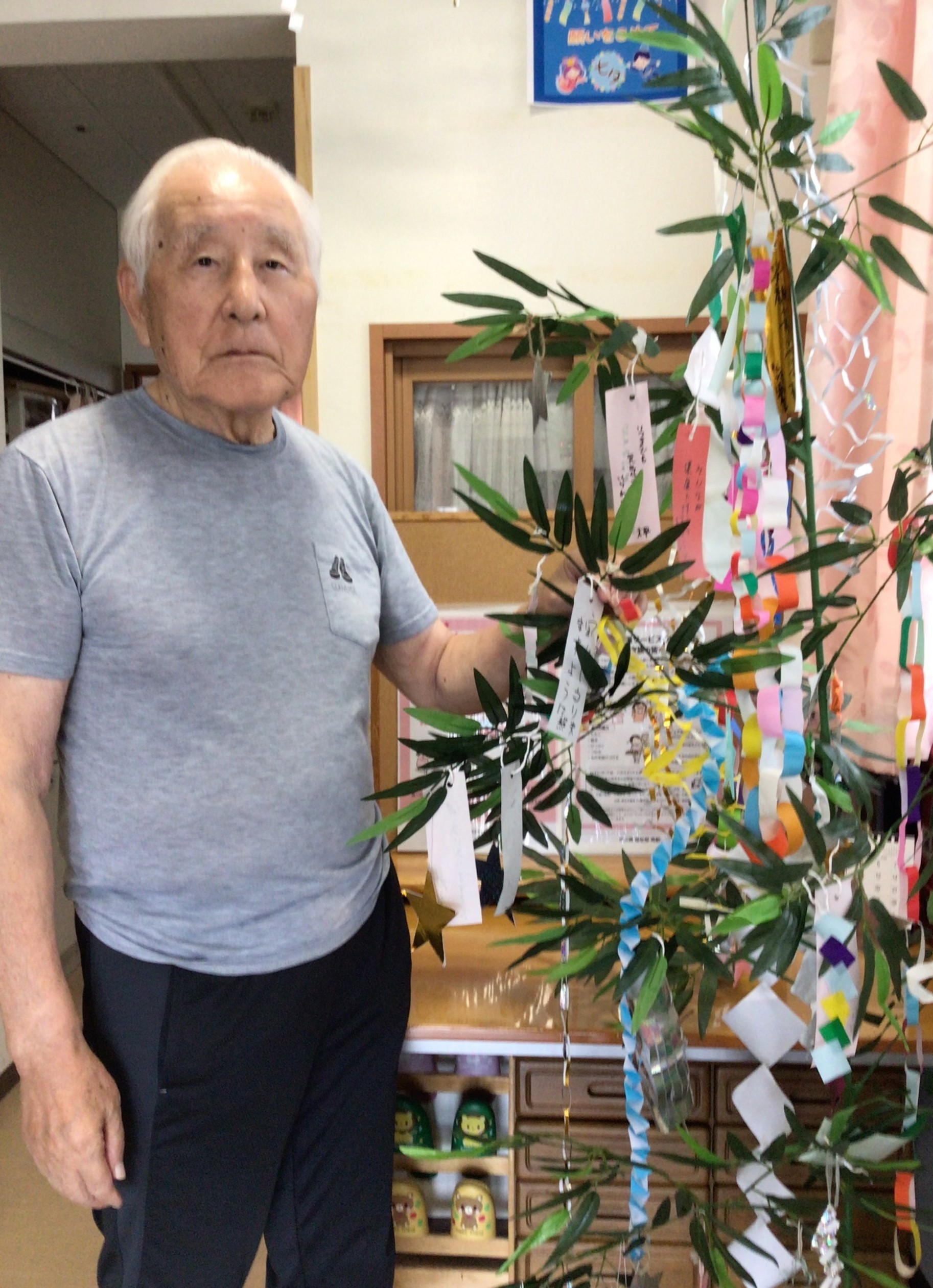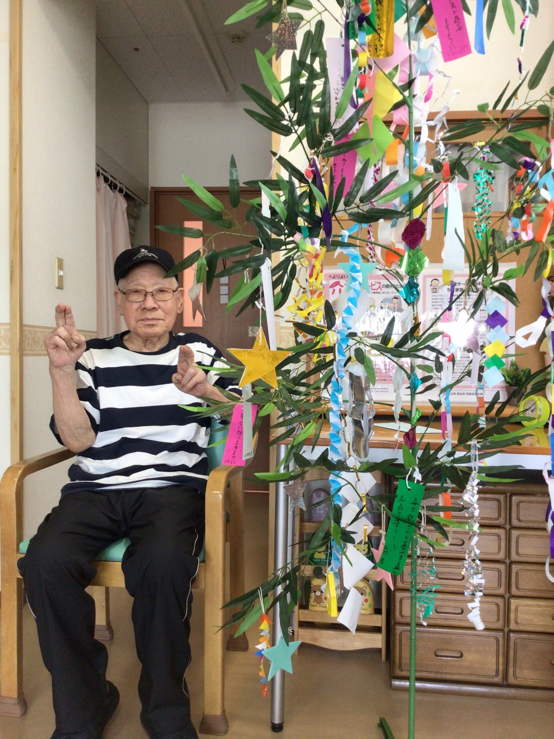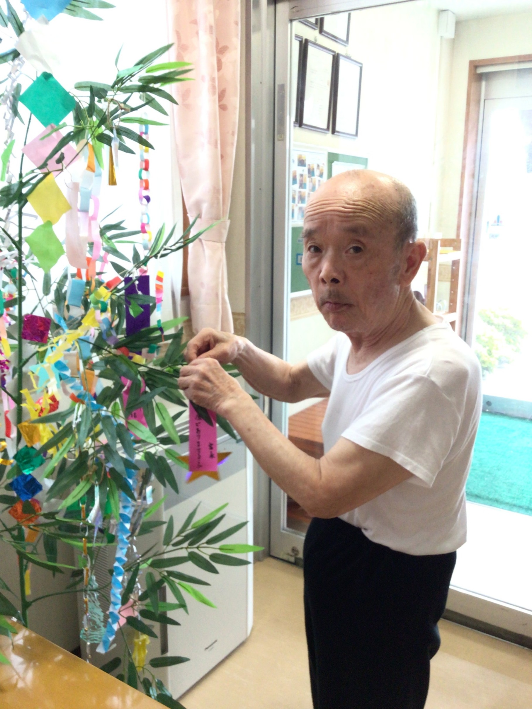 最初は、少し物足りないかな~と思いながら飾り付けをしていたのですが、入居者の皆さんに短冊を書いていただき、たくさんの想いがこめられた、とても素敵な笹になりました。