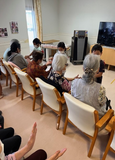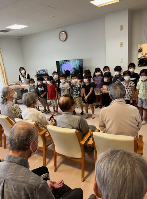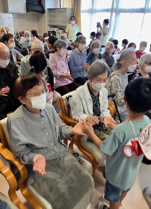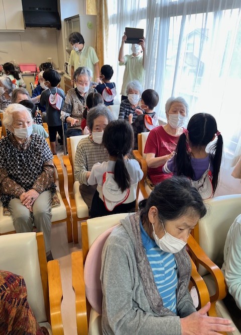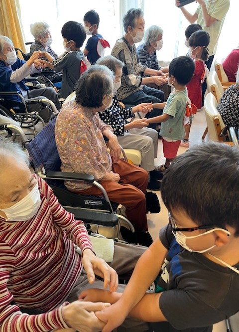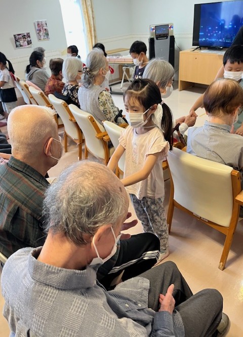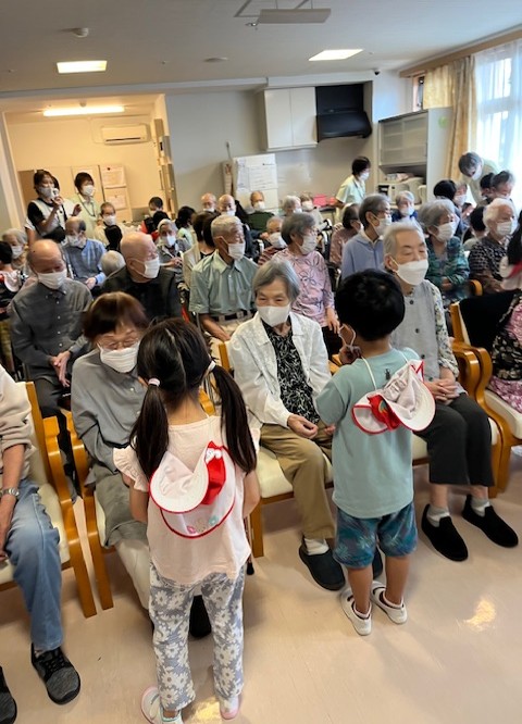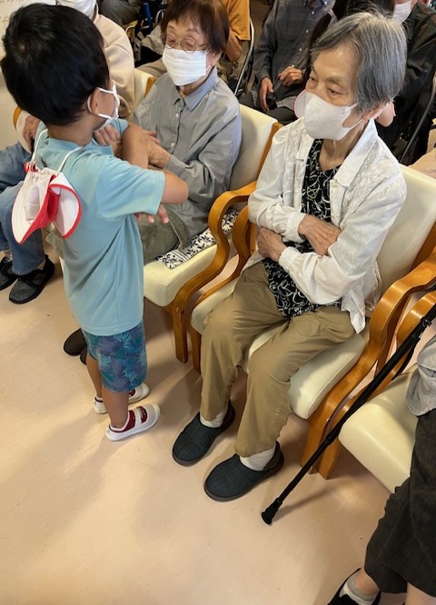 今回は4.5歳のクラスの子供たちが歌を歌ってくれたり、入居者様の手を取り手遊びをしてくれました👏