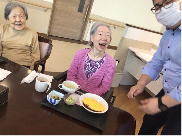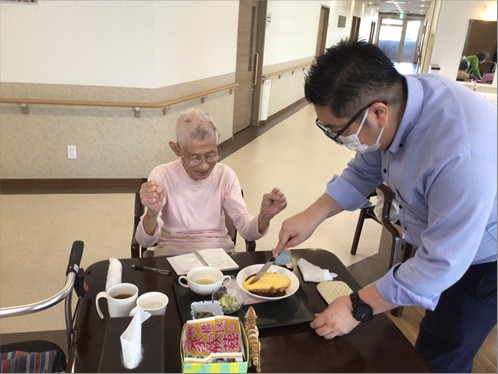 おやつの時間にはケーキを提供させてもらい、とても喜んでいただきました。