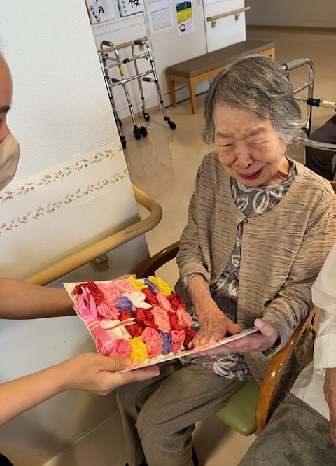 当施設では今年度101歳を迎える方が3人入居しており、施設側からも手作りのカードをプレゼントしました♡