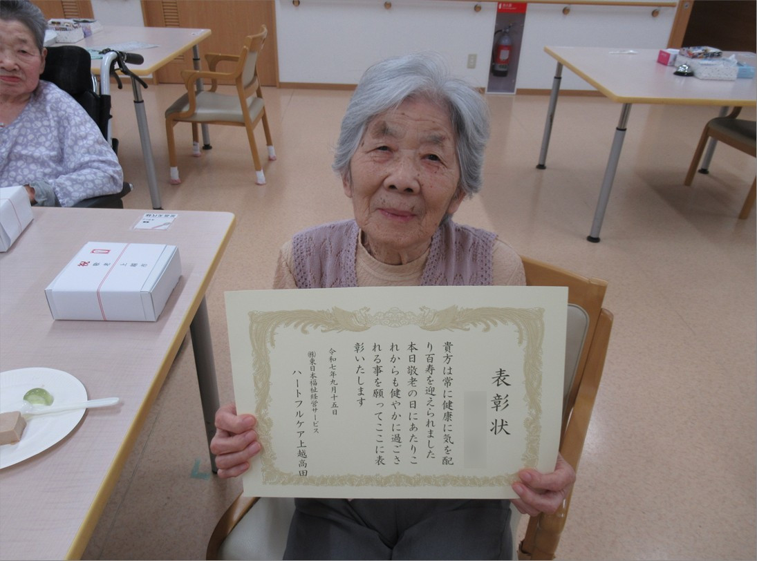 秋を感じる季節となりました。『ハートフルケア上越高田』では9月15日敬老会を催しました。