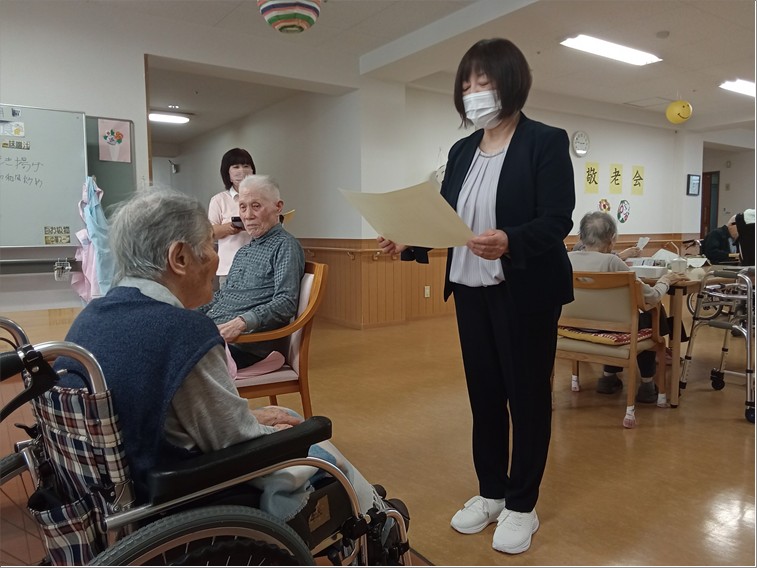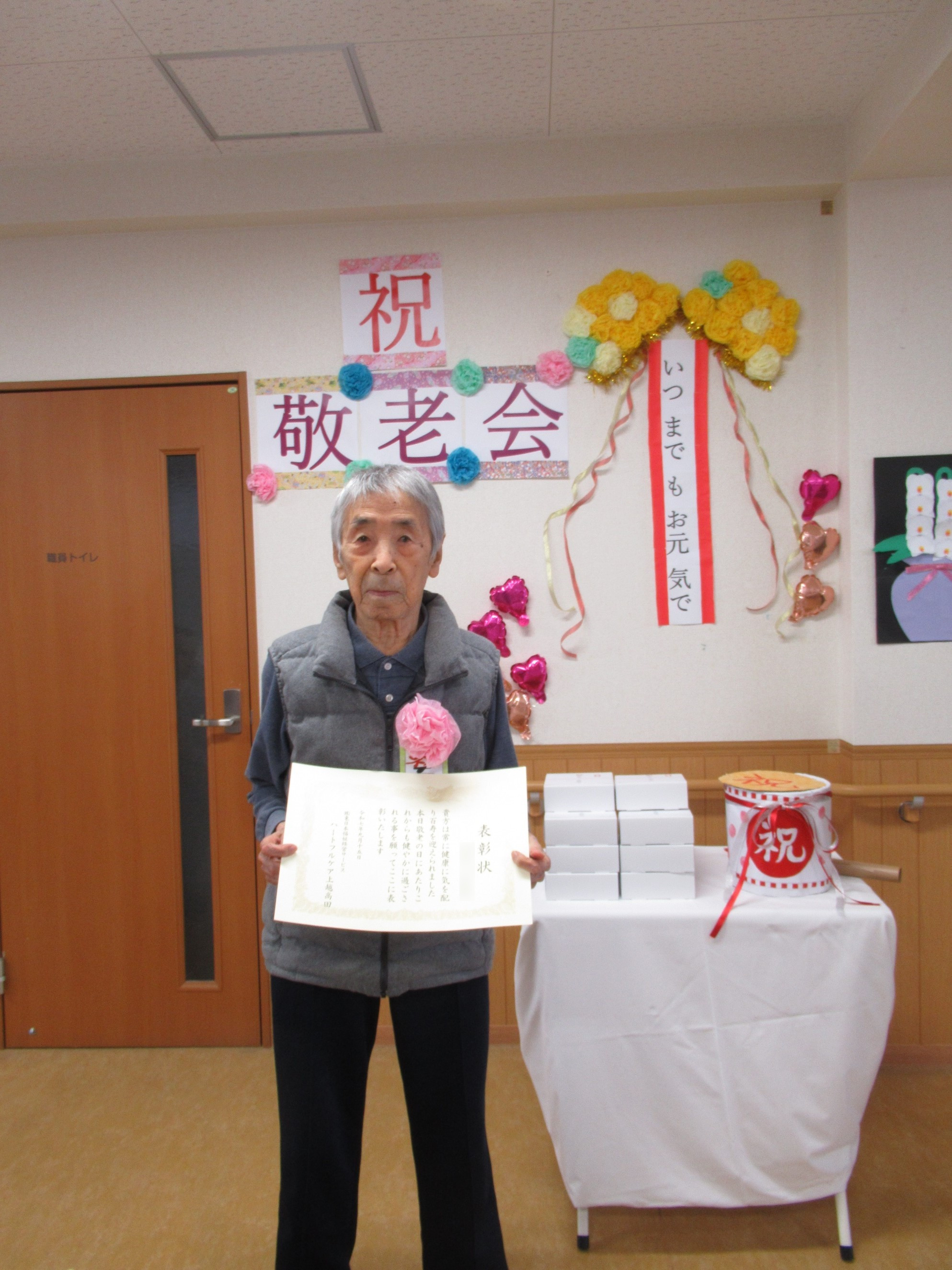 節目の方々へ施設長より感謝状をお渡ししました。昼食は敬老会メニューで提供致しました。
