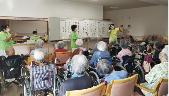『お楽しみおやつ』のあとは、『賀寿の方々のお祝い』と『ボランティアの方々による催し』と続きました。