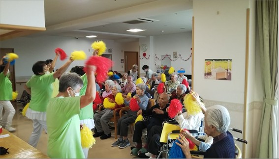 歌にダンス、ボンボンを振り回し、皆様も参加型の催しで楽しいひと時を過ごしていただきました。