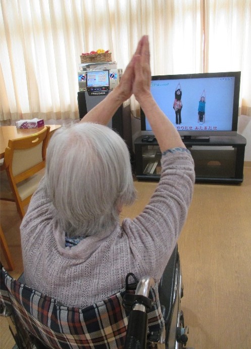 そこで、ゆうきゅう館では「エルダーシステム」を使い体操を行いました。