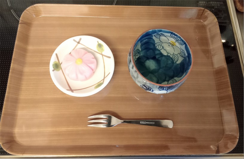 職員の音頭で一本〆で締め、お開きとなり、それぞれのフロアで季節にちなんだ美しい練り切りをおやつに頂きました。