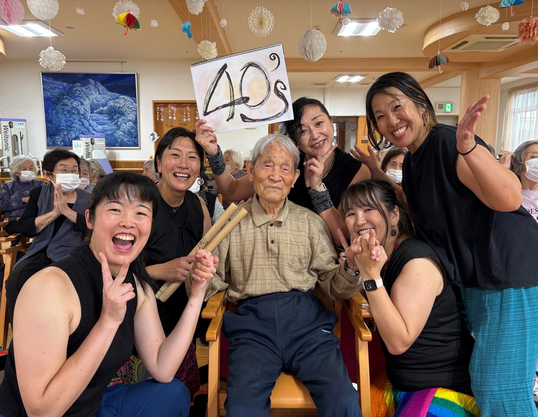 最後には、記念撮影。メンバーに囲まれ、とても大満足されている103歳のご利用者様(笑)