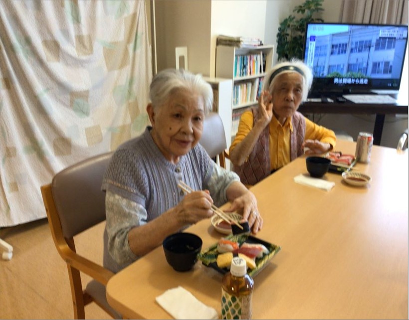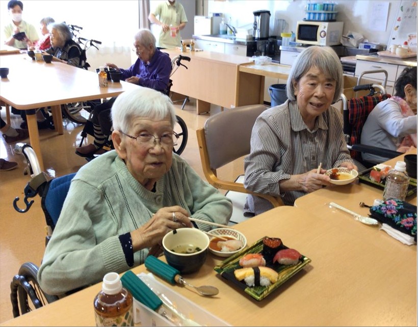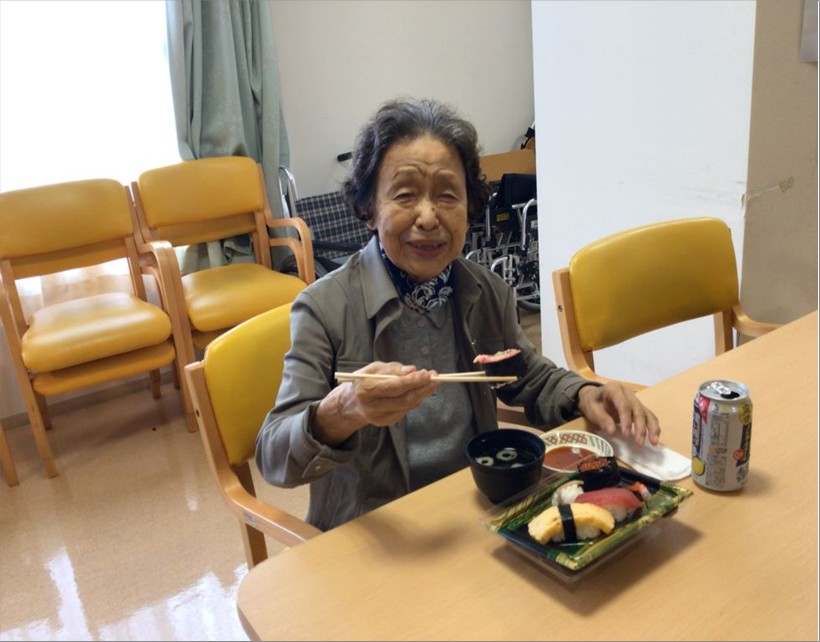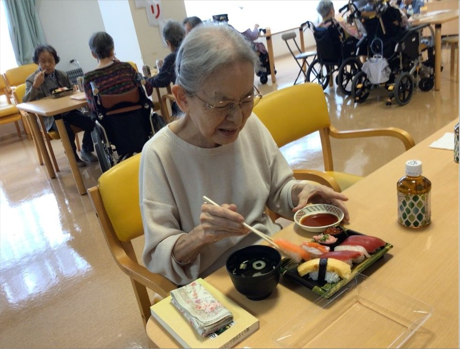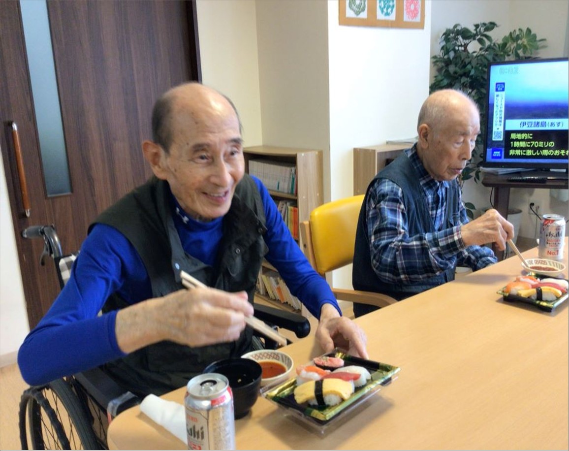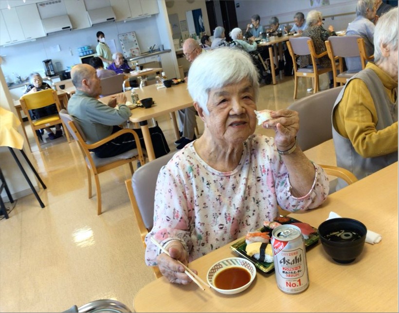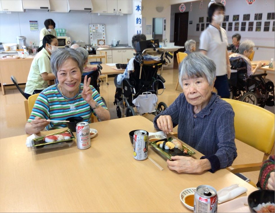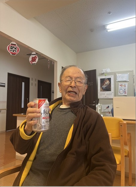 まず昼食にお祭りメニューとして『お寿司』と『ノンアルコールビール』を提供し、皆で乾杯をしました🍻
