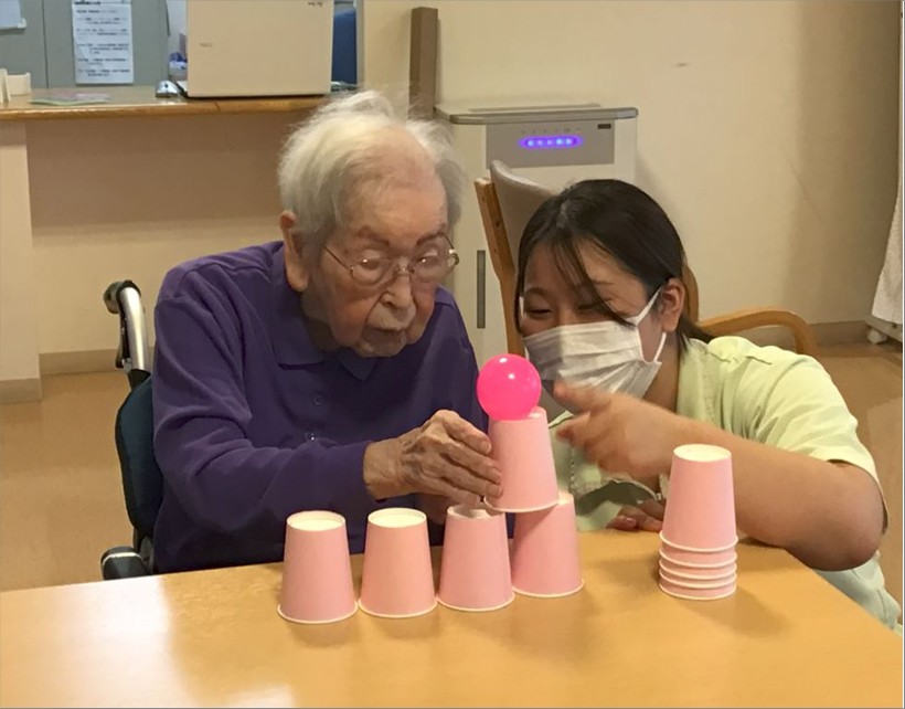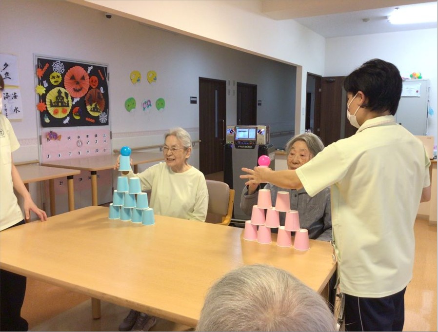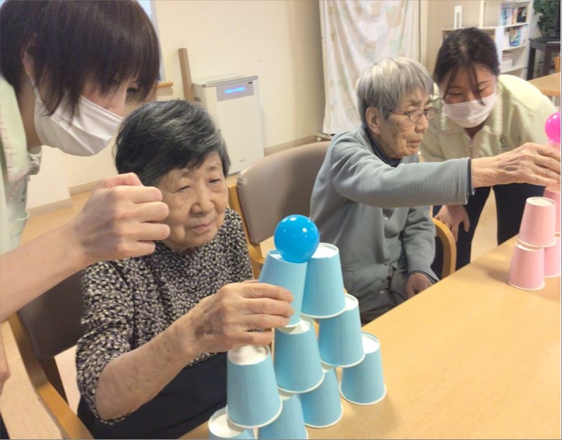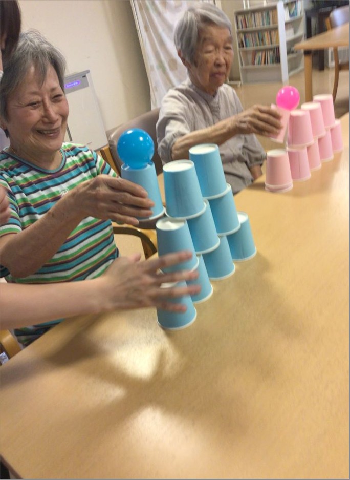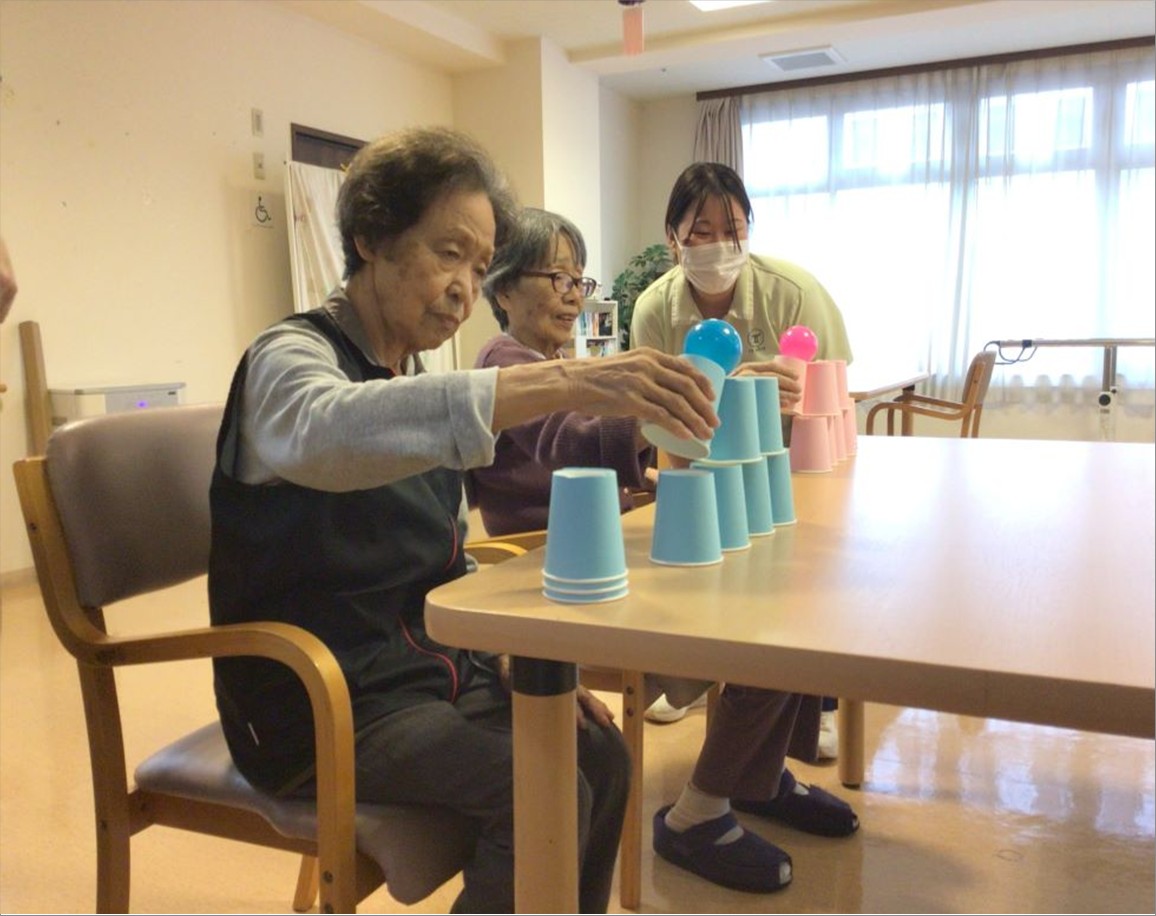 レクリエーション『ピラミッド型ボール移しゲーム』の様子をお届けします🤗