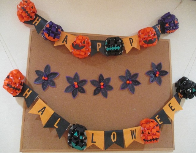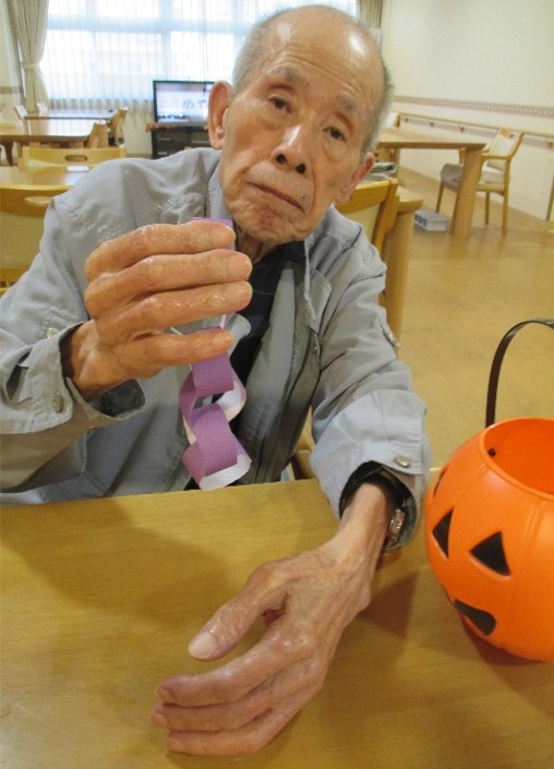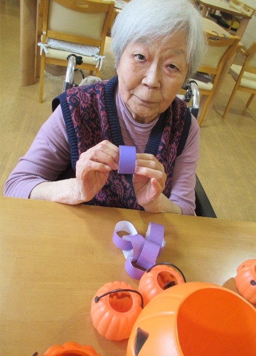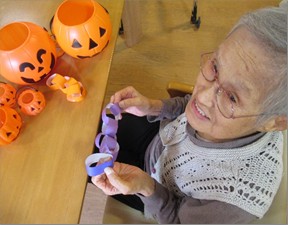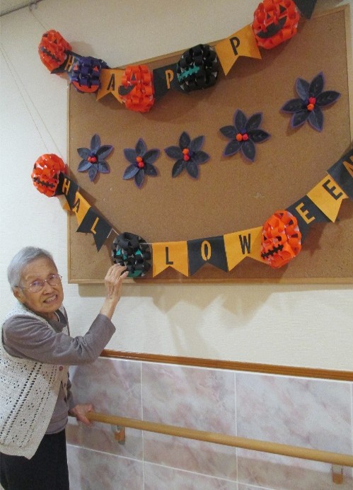 ご高齢の入居者様にとってハロウィンは馴染の薄い行事ですが、皆様に楽しんでいただきたく装飾品を作りました!