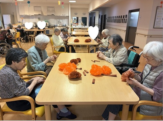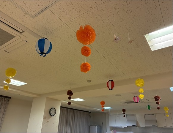 完成した天井飾りを全て天井に飾り終えると、入居者様から「ありがとう」「綺麗だね」とのお言葉と拍手をいただきました😆