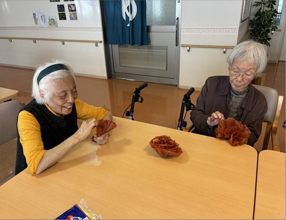 皆でお花を開いている際に昔話で盛りあがり、とても楽しそうでした😌