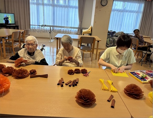 お花紙は茶色・黄色・オレンジ色を使用しました🍂