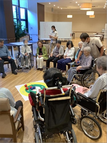 今回もたくさんのご入居者様がご参加くださいました。一人一人の動きが気になるご様子です。