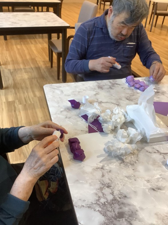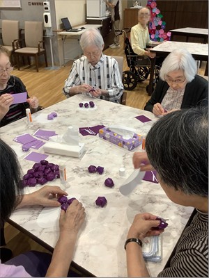 壁に飾った様子に「美味しそう!」「素敵!」と、施設に遊びに来られたお友達に見せてあげたいと、食堂にお招きになられたご入居者様もいらっしゃいました。