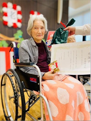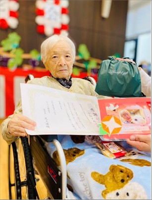 今年は米寿・卒寿・百寿の3名様へ、施設長より表彰状と記念品を贈呈させて頂きました。