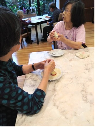 さつま芋の名産地として知られる熊本県で、秋の収穫期によく食べられてきた『いきなり団子』を職員と入居者様一緒に作りました。