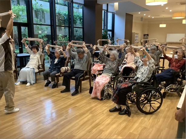 掛け声に合わせて、両手を肩に腰にと動かしたり、タオルを使っての体操も、とても皆様楽しそうに体操されていました。今後の体操も楽しみですね。