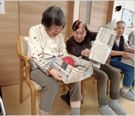 紙風船を受け取る時に箱を差し出すタイミングが難しく、視線と呼吸を合わせて頑張っていました。