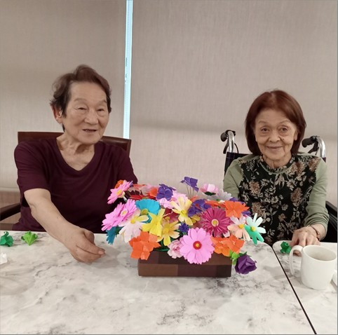 『折り紙』を折ってバラを折ったり、風船を折ったり楽しまれています。