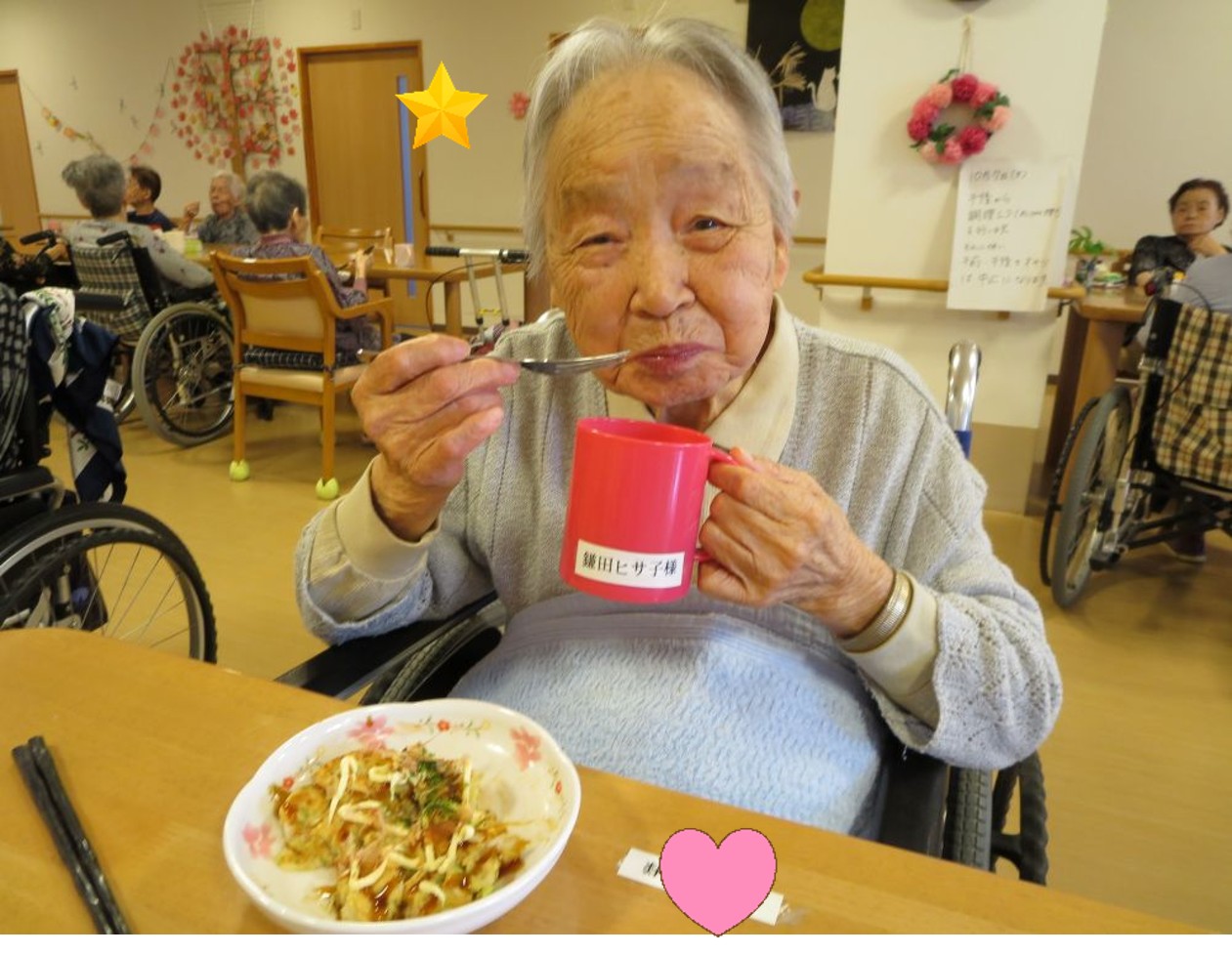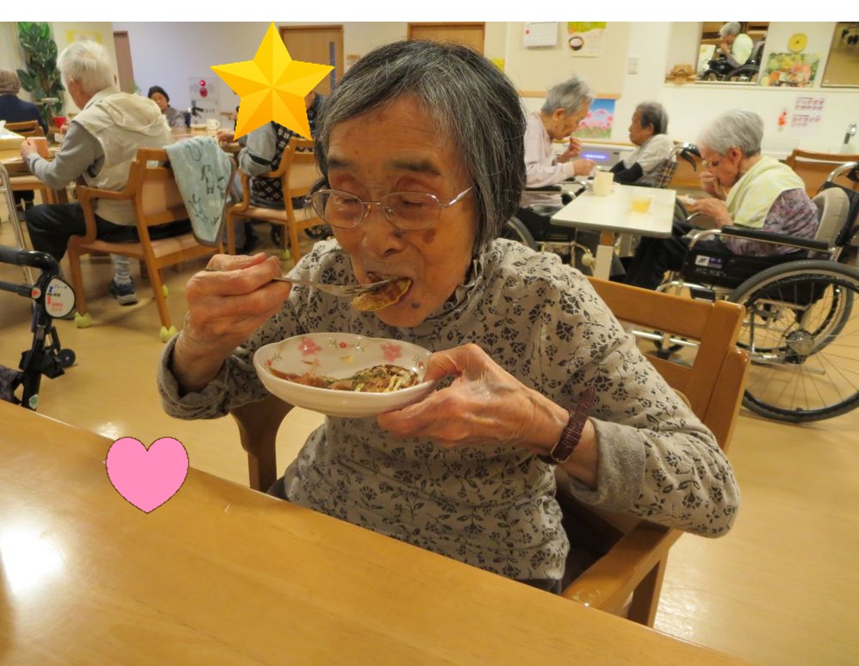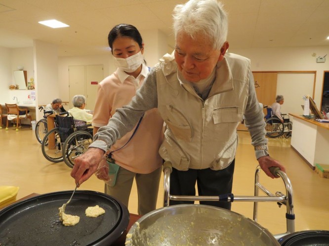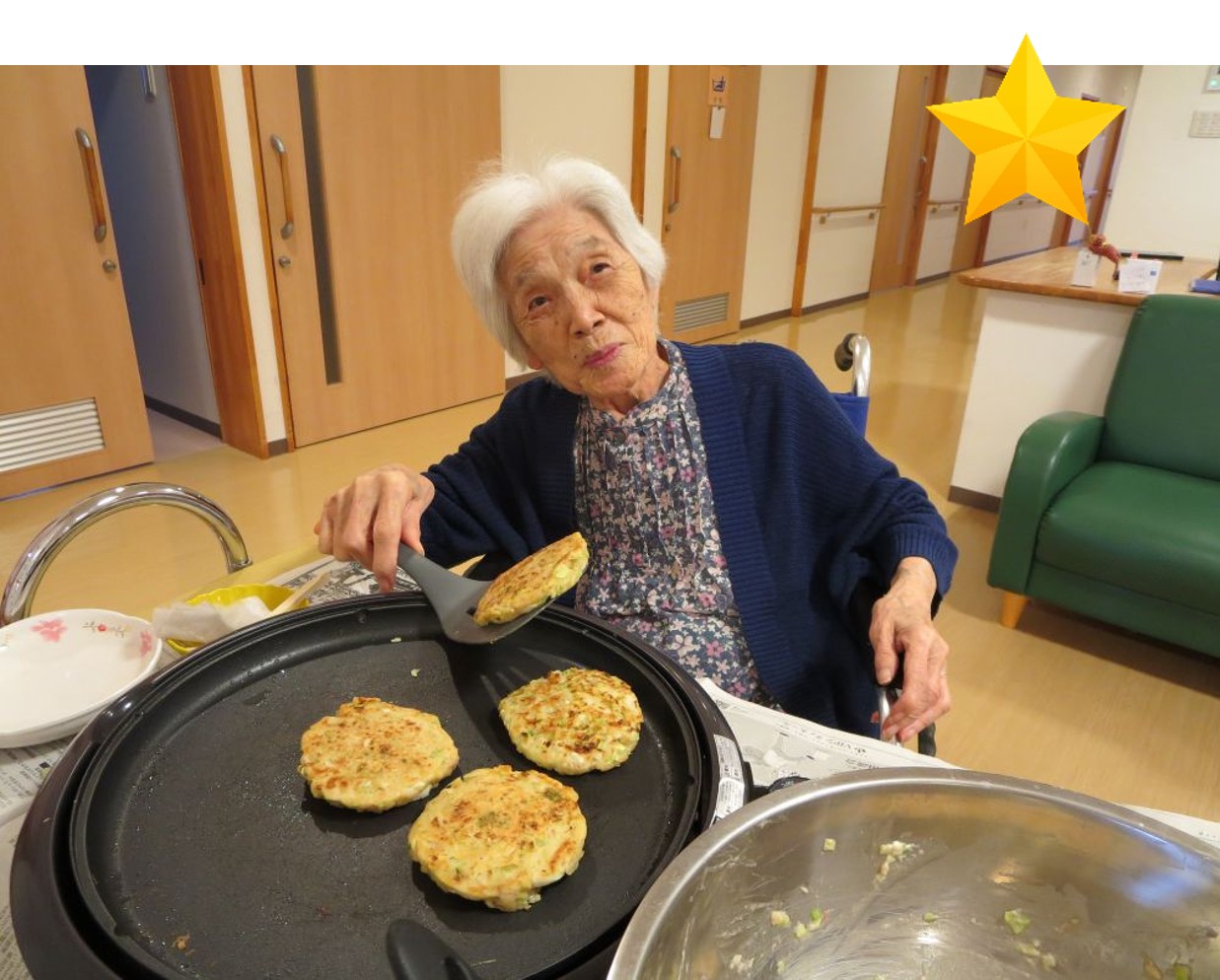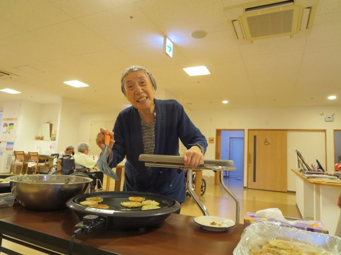お好み焼きの生地は職員が作りましたが、ホットプレートで焼いたりひっくり返したりは入居者様にも手伝って頂きました😊