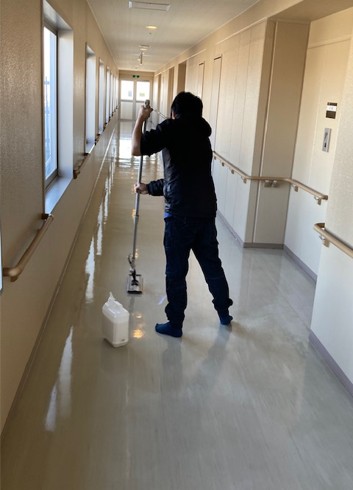 前回と同様手際よく床をお掃除していただき、見る見る間にピカピカになっていきました。