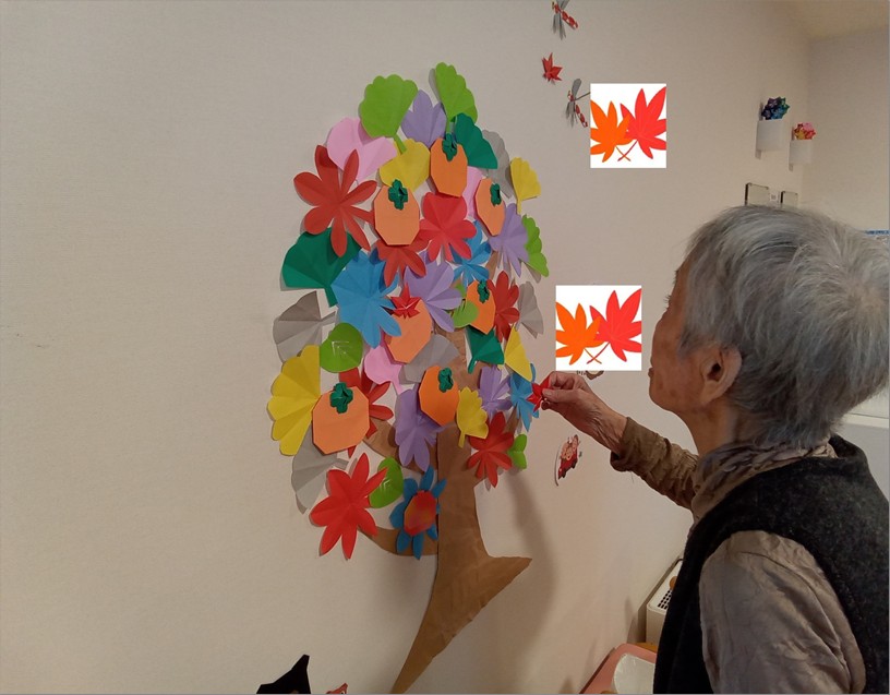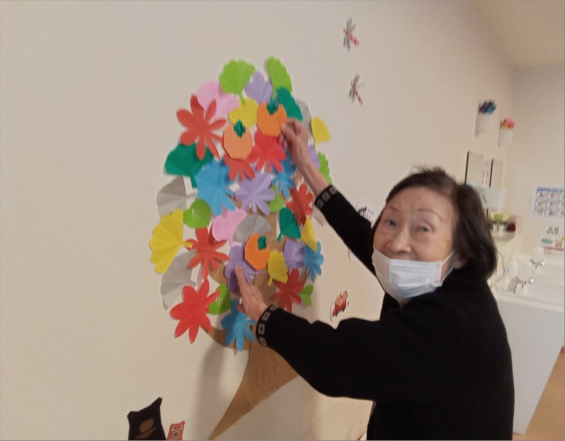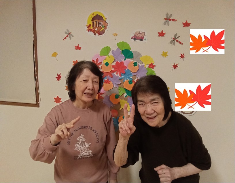 皆さんで飾り付けをしてくださり室内の紅葉もキレイです🍁短い秋を室内でも楽しんでいらっしゃいます。