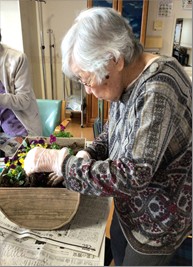 皆さんのお食事をするフロアから見えるようにと、プランターにお花を植えました。
