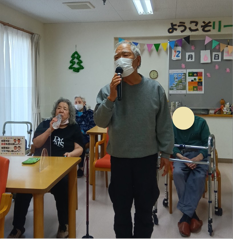 皆様歌がとてもお好きで、お一人で3~4曲リクエストされる方が多くおられますが、歌い手さんも多いので皆様譲り合って多くの入居者様に歌って頂きました。