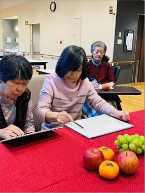 『ローベル西荻窪』には絵や書道がお上手な方が多く、今月から始まった「デッサン」。