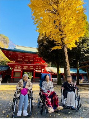 近隣にあります井草八幡は、毎年イチョウの葉っぱが黄色く輝いて美しく、七五三のお祝をしているかわいい子供たちもいて「かわいいわね、おめでとう」と声をかけておられました。