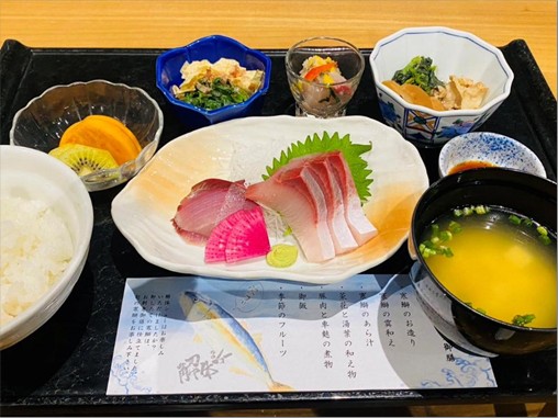 お造りやあら汁、湯葉と菜の花の和え物などイベントらしい献立です。