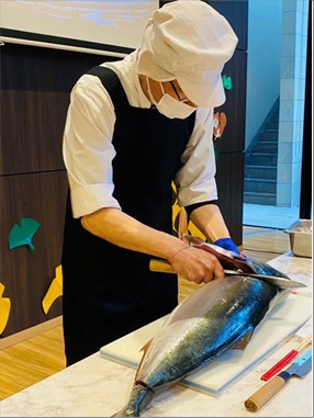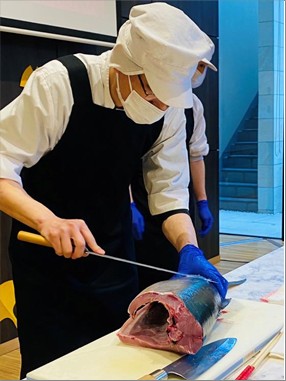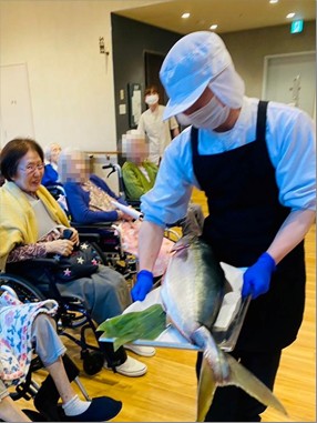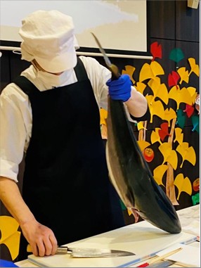 11月のバースデーイベントディナーは鰤の解体ショーです。手際よくさばかれる鰤に自然と拍手が起こりました。