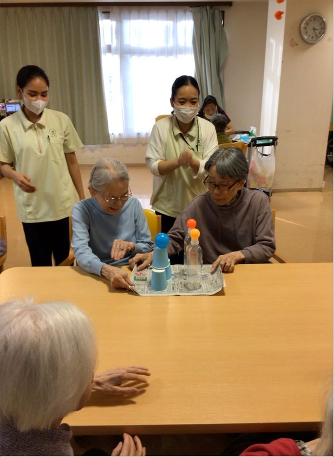 レクリエーション『新聞紙引き寄せゲーム』の様子をお届けします🤗