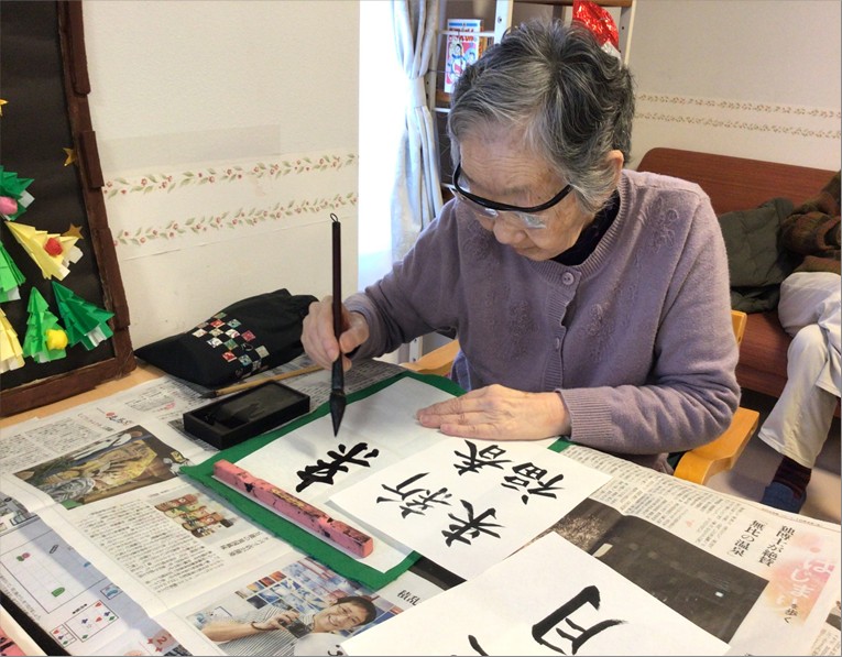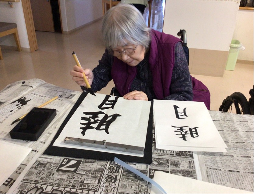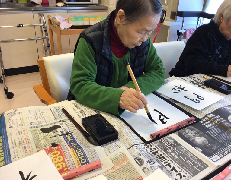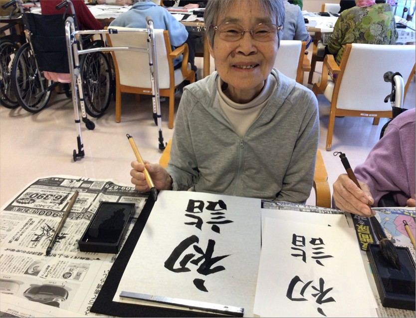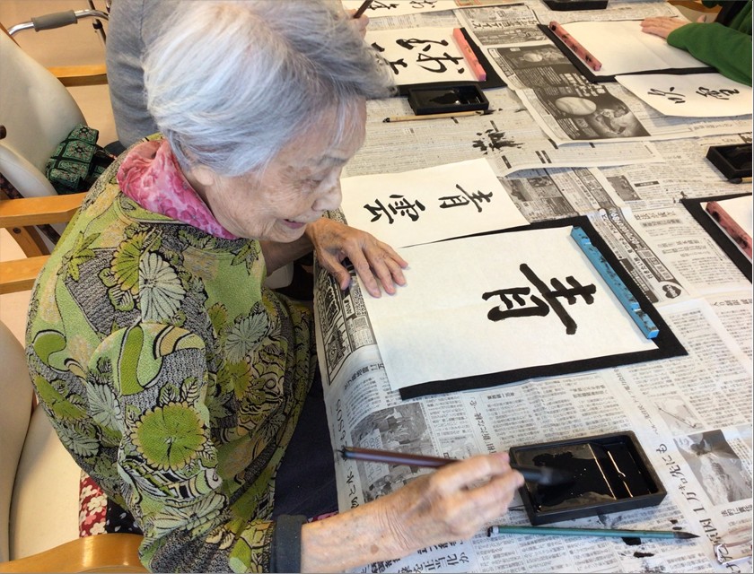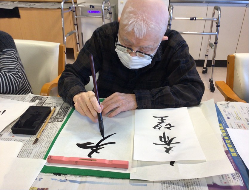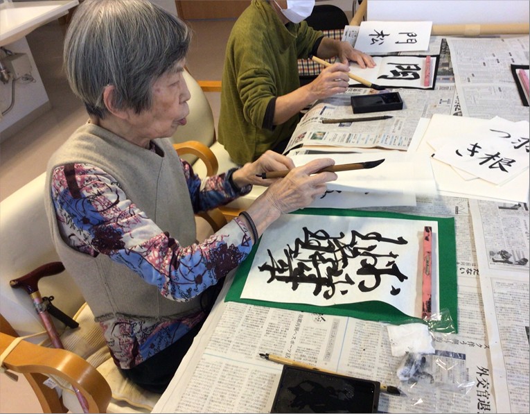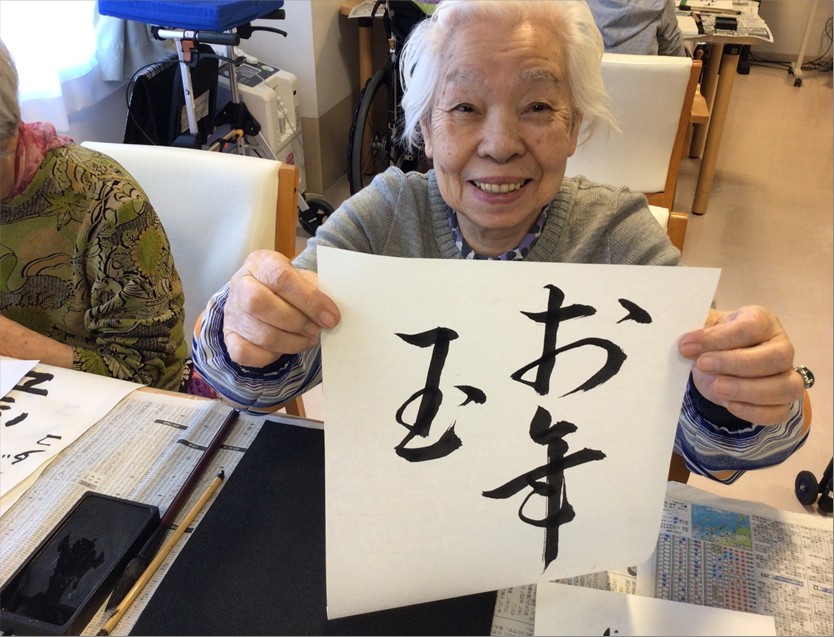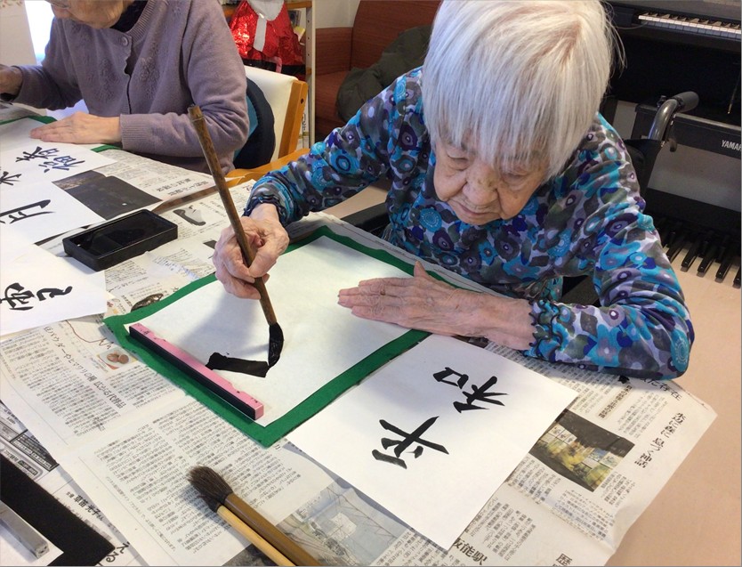 年内最後の習字は、、「お年玉」や「睦月」や「迎春」などの見本からお好きな言葉を選んで書いていただきました☺️