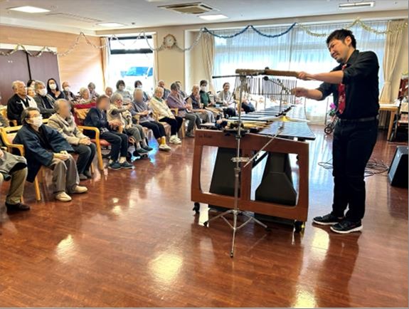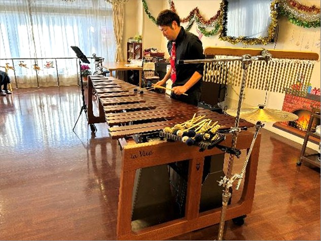 昨年の12月にも演奏会が開催されて、ご入居者様・職員ともにマリンバの音色に魅了され、もう一度聞きたい👂!!と熱望し今日を迎えました。