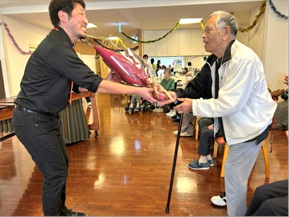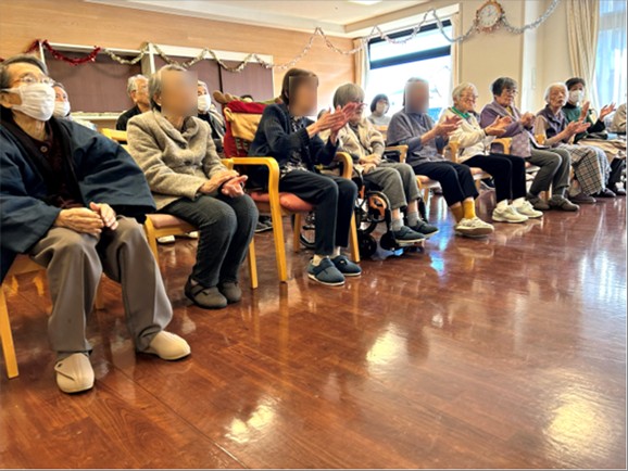 『ジングルベル』『津軽海峡冬景色』『また君に恋してる』など聞きなじみのある曲が演奏されると自然と口ずさまれたり、演奏に合わせるように手を動かしたり、ピアノを弾くような仕草をされたりと、とても楽しまれているご様子が伝わってきました。