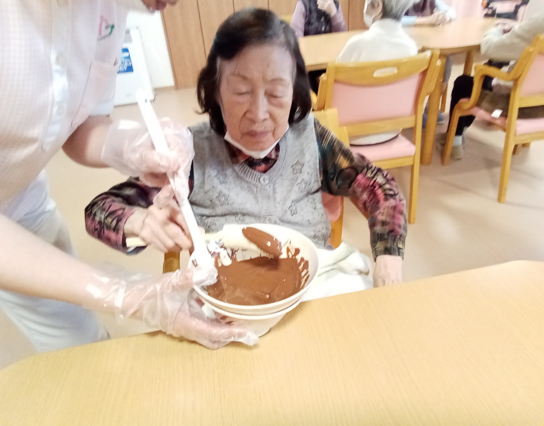 チョコを付け、トッピングも楽しみながら仕上げました。