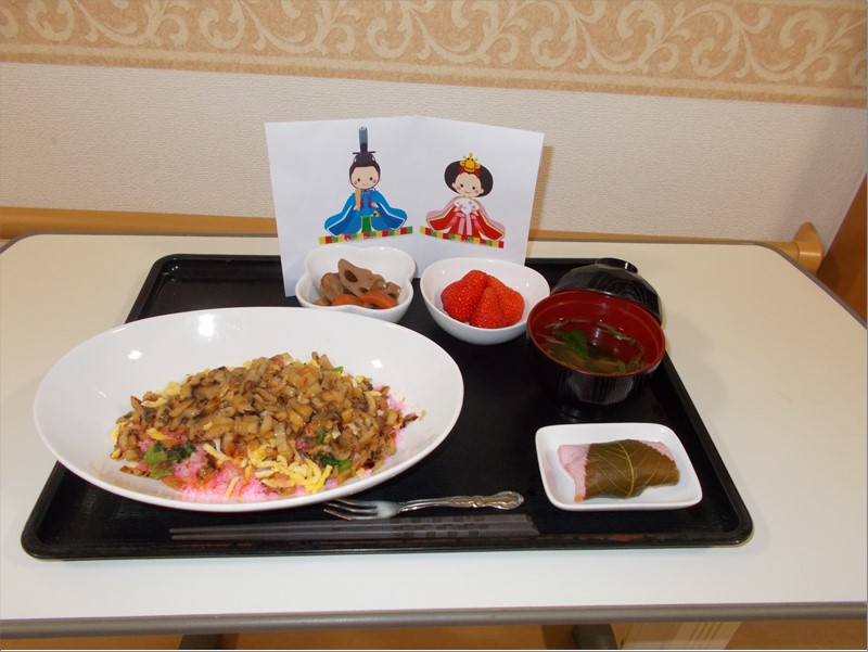 『リーシェ安行』の3月の最初のイベントは桃の節句です。お食事にはアナゴをふんだんに使用し、ボリューム満点です。