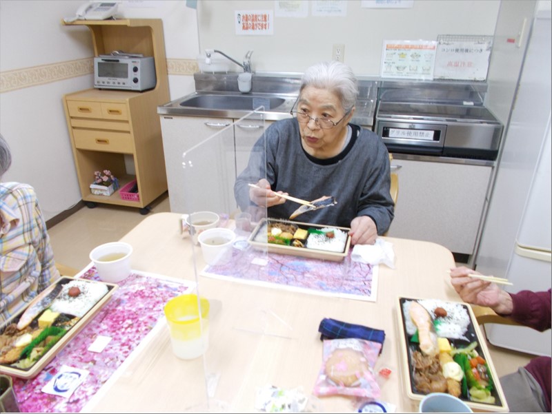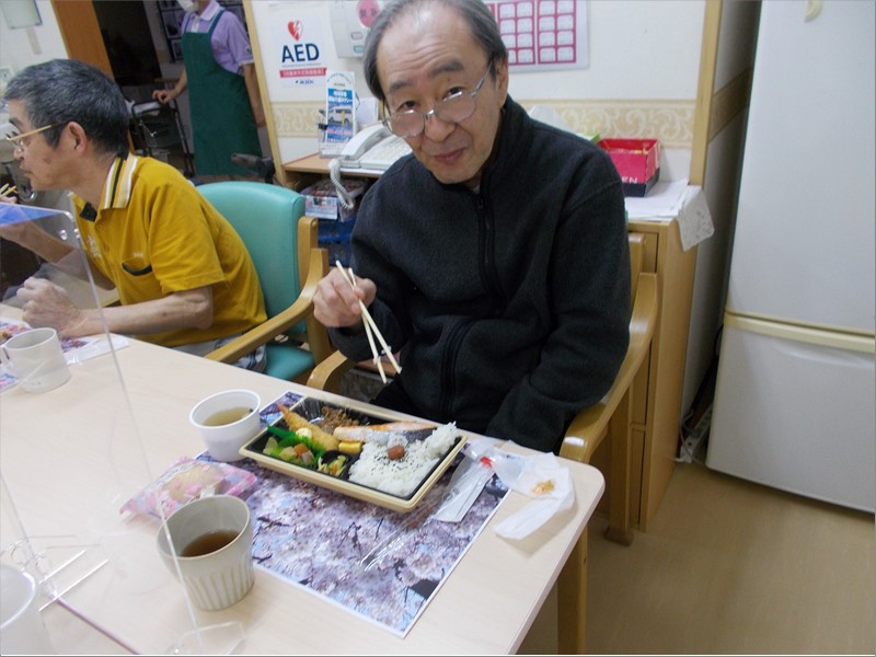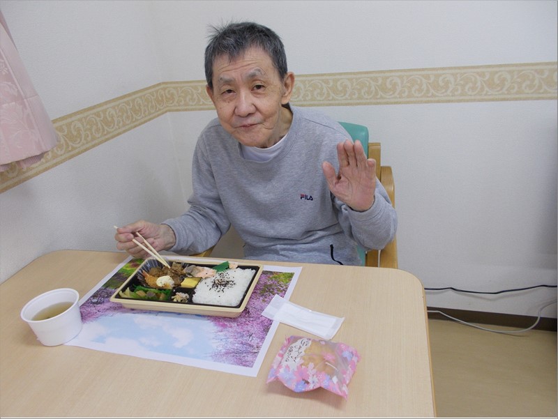 桜は葉桜になってきましたが、先月行って来た桜を思い出しながら、『リーシェ安行』ではお花見弁当と称して、いつもとは違った夕食を召し上がっていただきました。