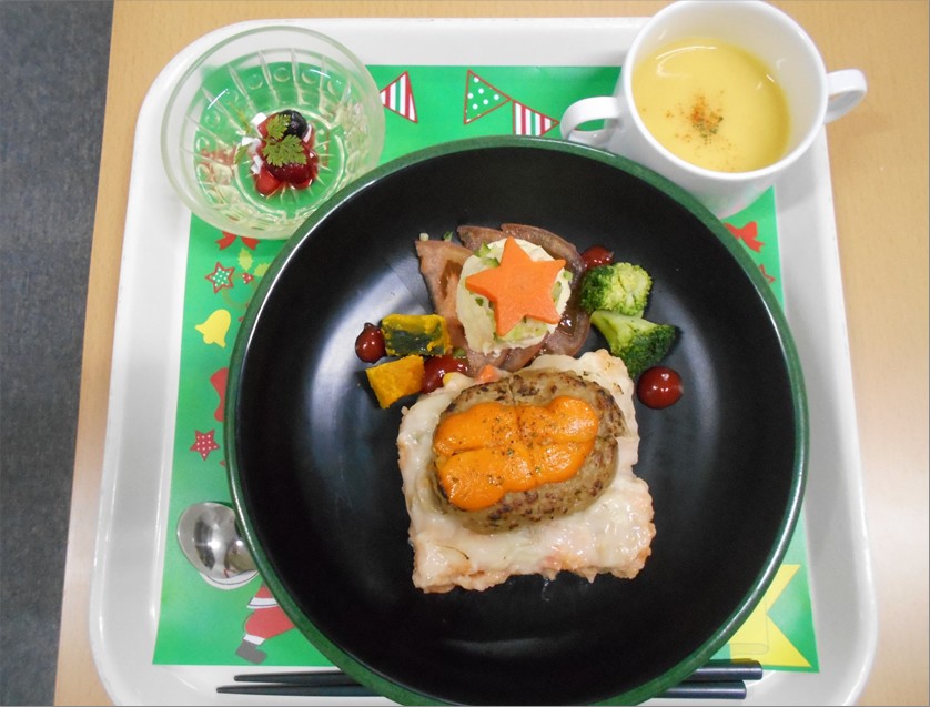 今年はハンバーグドリア、Xmasツリーポテトサラダ、スープ、デザートです!!