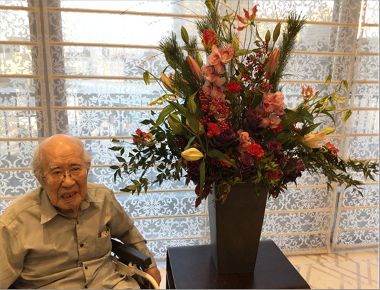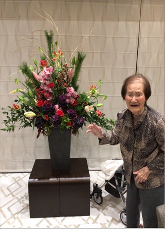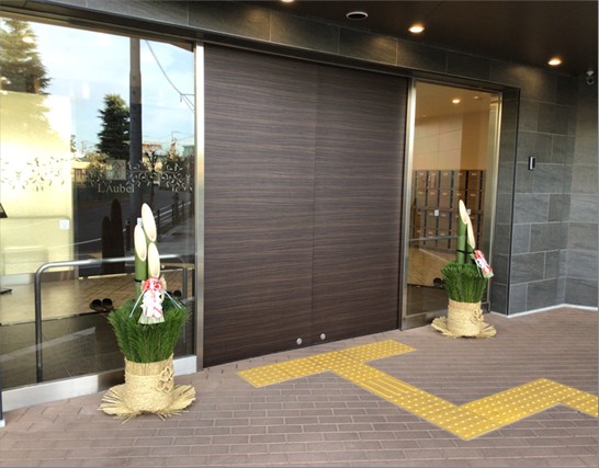 今年は皆さまに晴れやかな気持ちになって頂きたいと思い、毎年の門松に加え、エントランスに大きな花を飾らせて頂きました。